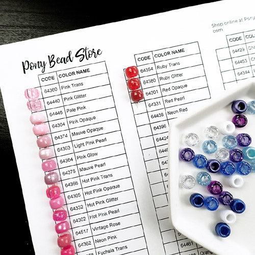 A pony bead mix of earth tones in different shades of green, accented with other calming, neutral colors. Includes opaque, transparent and pearlized bead colors.